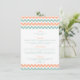 Simple mais élégante, la collection moderne chevron mariage est un design époustouflant avec un joli imprimé zig-zag dans une couleur pêche, menthe et blanche, parfait pour toute célébration mariage moderne. Ces cartes de menu peuvent être personnalisées pour votre occasion spéciale et feraient le menu parfait pour votre mariage, douche nuptiale, fête de fiançailles, fête d'anniversaire et bien d'autres occasions spéciales. Ajoutez votre libellé personnalisé à cette conception à l'aide des cases "Modifier ce modèle de conception" situées à droite de l'élément, ou cliquez sur le bouton bleu "Customiser" pour arranger le texte, modifier les polices et les couleurs et ajouter des informations ou des images supplémentaires à cette conception.