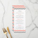Simple mais élégante, la collection moderne chevron mariage est un design époustouflant avec un joli imprimé zig-zag dans une couleur rose, gris et blanc, parfait pour toute célébration mariage moderne. Ces cartes de menu peuvent être personnalisées pour votre occasion spéciale et feraient le menu parfait pour votre mariage, douche nuptiale, fête de fiançailles, fête d'anniversaire et bien d'autres occasions spéciales. Ajoutez votre libellé personnalisé à cette conception à l'aide des cases "Modifier ce modèle de conception" situées à droite de l'élément, ou cliquez sur le bouton bleu "Customiser" pour arranger le texte, modifier les polices et les couleurs et ajouter des informations ou des images supplémentaires à cette conception.