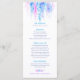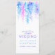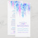 Le menu bleu en forme de carte à rack avec l'art floral en cascade en aquarelle. Moderne menu de dîner de mariage ou menu d'événement spécial avec motif de vigne fleuri abstrait bleu en aquarelle. Modifiez ce menu avec votre propre menu et vos propres plats. Moderne menu d'art aquarelle abstrait et décontracté en bleu, aqua et rose. Idéal pour les mariages de printemps avec wisteria ou fleurs bleues et les mariages modernes en bleu et rose ou d'autres événements sur le thème bleu. © Conception et peinture à l'aquarelle par Sarah Trett pour www.mylittleedenweddings.com sur zazzle.