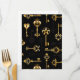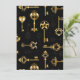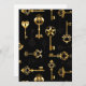 Seamless pattern of antique, gold and silhouette keys on black background.