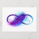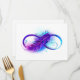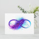 Symbole de l'infini avec une belle plume peinte en couleurs vives violettes et bleues sur fond blanc.