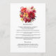 Menu lustre mariage à fleurs rouges. Idéal pour un mariage dans le jardin.