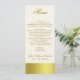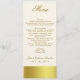 Menu maigre élégant de table de réception de mariage, fait en ivoire, avec des graphiques de bande goldtone le long du fond, et bâche le dos. Le texte fait sur commande fait dans un brun d'or est prêt à personnaliser pour votre réception de mariage. Belle addition à notre ensemble goldtone élégant de mariage.