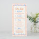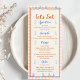 Menu tendance de style italien, facile à personnaliser. Avec typographie éclair et détails d'éléments dessinés à la main. Sur un arrière - plan en vichy orange aux détails bleus.