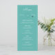 Ce menu comporte un plan et un sentier en forme de coeur autour du nom de la mariée et des mariés. Il y a de la place pour 5 plats. Tous les détails du menu peuvent être modifiés. Les couleurs sont l'aqua, le rose, le blanc et le noir.