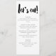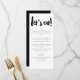 Ajoutez une touche de style à votre réception de mariage ou à toute célébration grâce à notre menu de lettres brush moderne Let’s Eat Bold. Doté d'un lettrage à brosse audacieux et d'un design épuré et minimaliste, ce menu est parfait pour les couples, les fêtes d'anniversaire ou toute personne souhaitant ajouter une touche moderne à leur événement. Entièrement personnalisable, il est idéal pour afficher vos options de repas aux mariages, aux anniversaires, ou même pour ceux qui travaillent dans l'hôtellerie ou la restauration. Que ce soit sur les tables ou comme gardien, ce menu ajoute une touche chic et personnelle à toute occasion.