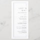 La carte de menu minimale mariage est dotée d'un cadre chic moderne et de détails de police sans serif en noir et blanc, simple et élégant. Idéal pour les mariages modernes et autres événements. Voir toutes les pièces correspondantes dans la collection.