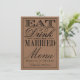 Mangez, Buvez & Soyez Mariés Cartes de menu Mariage Rustique Kraft. AFFICHER LES ÉLÉMENTS CORRESPONDANTS POUR CETTE COLLECTION