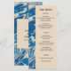 Ce menu saisit à merveille l'essence d'un mariage côtier, sur le thème de la plage. L'arrière - plan peint à la main en marbre bleu reflète l'aspect apaisant des vagues de l'océan, créant une atmosphère paisible. Combiné à une palette de couleurs minimaliste, il apporte une touche moderne et design. Si vous souhaitez étendre ce style élégant à votre papeterie mariage, pensez à explorer la collection "LARA" d'E J Inkwell. C'est une façon fantastique d'obtenir un look cohésif pour votre journée spéciale.