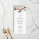 Le menu moderne du dîner de la réception, mariage tropical, propose des feuilles de palmiers et des fleurs aux tons rose et pêche. Le vert de la taille sur le dos peut être changé en n'importe quelle couleur. Tous les textes, polices et couleurs peuvent être modifiés. Coordonner les éléments disponibles pour compléter votre suite de mariages.