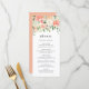 Ajoutez un accent floral élégant à votre paysage de table d'évènement avec cette carte de menu floral personnalisable. Il dispose d'une guirlande florale aquarelle de pêche, de roses orange et ivoire, de pivoines et d'hydrangées avec des accents d'eucalyptus et de verdure. Personnalisez cette carte de menu floral en ajoutant vos propres détails. Cette carte de menu aquarelle est parfaite pour les mariages printaniers, les douches nuptiales, les baby showers et bien plus encore.