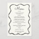 Ajoutez une touche ludique à votre réception grâce à notre menu mariage personnalisé Black and White Quirky Hand Drawn Wave. Parfaites pour les fêtes Mariages Doodle et les thèmes Mariage Old Money intemporels, ces cartes de menu mariage sont un choix élégant. Découvrez des idées de menu mariage uniques pour compléter votre journée spéciale avec ces designs charmants.