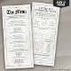 Améliorez votre réception de mariage avec notre Modèle de menu Mariage avec Jeux de réception. Ce modèle élégant met non seulement en valeur votre menu, mais propose également de nombreux jeux amusants à l'arrière pour divertir vos invités pendant qu'ils attendent leurs repas. Facile à customiser et parfait pour ajouter une touche unique à votre journée spéciale. Faites de votre mariage une expérience inoubliable grâce à ce modèle de menu élégant et divertissant !