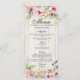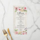 Menu mariage Aquarelle Fleurs roses Bois rustique