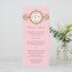 Carte de menu qui prend son influence de l'époque Art Déco. Un orchestre doré orné, ressemblant à une montre victorienne, présente un médaillon tenant le monogramme du couple. L'arrière - plan rose pâle imprime un motif subtil comme filigrane. Ajoutez ou réduisez l'espace entre le premier et le dernier initiales pour équilibrer avec le monogramme central. Ajoutez un menu customisé en dessous. Un look classique qui donne l'ambiance à n'importe quel mariage. Disponible en couleurs alternatives avec des produits correspondants.