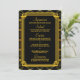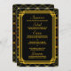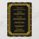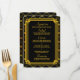 Ces cartes de menu sont dotées d'une palette de couleurs noir et or, d'un cadre géométrique, de motifs géométriques, d'autres détails stylistiques inspirés de l'Art Déco et des années folles. Vous pouvez customiser les champs de texte d'exemple à votre convenance.