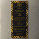 Ajoutez les détails du repas parfait pour votre journée spéciale avec ce magnifique menu d'inspiration des années 1920 aux couleurs noir brillant et doré vintage art déco.
