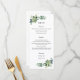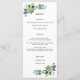 Menu présentant des feuilles d'eucalyptus et des plantes grasses peintes à l'aquarelle. Belle carte de menu pour mariages, fêtes de fiançailles, baby showers, événements spéciaux et réceptions. Personnalisez avec vos informations. Cliquez sur "cliquez pour personnaliser davantage" pour changer le style, la taille ou la couleur de la police.