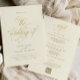 Cette élégante carte de crème et d'or mariage avec un remerciement sur le dos, de taille 5x7, propose une calligraphie luxueuse pour une touche sophistiquée à votre réception. Le dos comprend une note de remerciement sincère et un code QR pratique pour que les invités puissent télécharger et partager facilement leurs photos de votre journée spéciale. Un mélange parfait d'élégance et de fonctionnalité moderne pour une célébration mémorable.