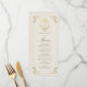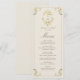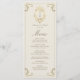 Élégante carte de menu de mariage vintage avec cadre baroque doré orné et design de monogramme classique. Imprimé sur fond crème, ce menu intemporel met en valeur chaque plat dans une mise en page sophistiquée. Parfait pour les mariages formels, luxueux ou inspirés de l'ère victorienne.