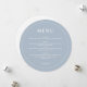 Ajoutez une touche d'élégance moderne à votre table mariage avec ce menu rond moderne simple Dusty Mariage bleu. Avec un arrière - plan bleu poussiéreux gris et un cadre blanc délicat, cette carte ronde offre un design épuré et minimaliste qui complète n'importe quel style mariage, que ce soit pour une fête de jardin de printemps, une fête de plage d'été, une réunion d'automne confortable ou un mariage d'hiver chic. La palette de couleurs et le design neutres permettent de s'associer facilement à une large gamme de papeterie et de décoration mariages, surtout lorsqu'il est assorti à d'autres objets de la même collection. Entièrement personnalisable en ligne, vous pouvez facilement mettre à jour le texte, les polices et la mise en page pour s'adapter à votre journée spéciale, aucun outil de conception ou d'expérience nécessaire. Faites en sorte que chaque hôte se sente bien organisé tout en conservant sa présentation simple, élégante et cohésive.