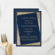 Un menu moderne et géométrique bleu marine et Mariage or. Cette carte de menu chic marine bleu et or mariage est parfaite pour toute jeune fille chic et branchée. Ce design est idéal pour un événement de fête branché et élégant. Customisez ce design avec votre propre message et des informations personnalisées. Tous les dessins sont imprimés.