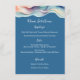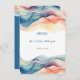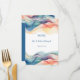 Menu moderne Abstrait Mariage conçu avec une vague de couleur vive à la fois devant et à l'envers. Le texte avant comprend : MENU MARIAGE, Les Noms de la Mariée et de la Salle et Date du Mariage, sur un arrière - plan blanc. Le texte inverse comprend : Sélections de menu, ainsi que vos sélections d'entrée, d'entrée et de dessert, accentuées d'une vague de couleur diagonale sur un arrière - plan bleu profond. Pour personnaliser ce menu, il vous suffit d'insérer votre sélection d'amuse-gueule, d'Entre et de desserts dans notre modèle simple, en remplaçant l'exemple de texte. N'oubliez pas de consulter la collection de Mariages Abstraits modernes pour les cartes et accessoires correspondants.