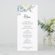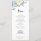 Menu Mariage bleu poussiéreux, ivoire, floral, verdure