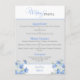 Voici un élégant menu de mariage à utiliser pour un dîner de répétition ou la réception de mariage lors de votre journée spéciale qui comprend des fleurs bleues de Bellflowers.