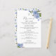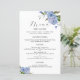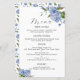Menu du dîner mariage romantique avec aquarelle illustration de fleurs de pivoines bleues avec verdure.
