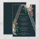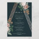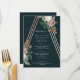 Un menu de dîner élégant conçu par Stacey Meacham présentant des fleurs de rose vintage et une structure triangulaire en or rose. Tout le texte en dehors de l'art du menu est entièrement personnalisable, vous permettant de modifier la police, la couleur et/ou l'emplacement de tous les mots. Utilisez-le facilement pour un événement d'entreprise également. Se coordonne magnifiquement avec d'autres articles de notre collection de mariage Boho Pyramid de Stacey Meacham disponible sur sa boutique Zazzle.