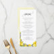 Ce magnifique menu mariage est composé de citrons lumineux aux fleurs de lavande et d'un élégant script. Vous pouvez customiser le texte sur l'invitation à répondre à vos informations personnelles. Le dos est à l'ombre d'une aquarelle jaune.