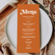 Parfaitement personnalisée pour s'adapter à votre thème, cette carte présente une palette rouge-orange étonnante qui complète tout décor de table mariage. Que vous planifiez une discothèque d'inspiration les années 70 super, funky ou un mariage tropical coloré, ce menu peut être customisé pour rehausser votre ambiance rétro, boho, ou même mariage électrique. Idéal pour une fête d'été ou d'automne, il promet d'être une pièce exceptionnelle à votre hippie super ou mariage rétro de l'ouest.
