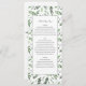 Menu mariage botanique de l'aquarelle feuillue