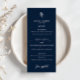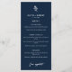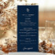 Ajoutez une touche raffinée et cohérente à vos tables de réception avec ce menu de mariage botanique bleu marine, conçu pour compléter les thèmes de mariage élégants et modernes. Avec un fond bleu marine profond accentué par une délicate brindille botanique blanche, cette carte de menu verticale offre une mise en page propre et structurée pour énumérer vos plats de mariage avec style. Avec des sections distinctes pour les entrées, les plats principaux et les desserts, ce menu personnalisable est parfait pour mettre en valeur vos sélections de dîner de mariage ou de buffet personnalisées. La palette de couleurs classique bleu marine et blanc se coordonne magnifiquement avec les décorations de table formelles, les centres de table floraux et la papeterie de mariage assortie de la même collection. Qu'il soit utilisé lors d'un dîner assis ou d'une réception assise, ce menu de mariage botanique améliore l'expérience culinaire de vos invités tout en ajoutant un élément soigné et axé sur le design à votre décor de table. Idéal pour les mariages haut de gamme, les lieux urbains ou les réceptions de jardin romantiques