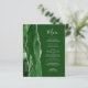 Le bord gauche de cet élégant menu mariage moderne comporte une bordure en aquarelle vert chasseur ornée d'une parties scintillant en faux argent. Le texte personnalisable combine écriture manuscrite et polices de caractères en gris argenté sur un arrière - plan vert. L'envers présente un design d'agate vert et argenté assorti.