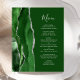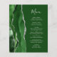 Le bord gauche de cet élégant menu mariage moderne comporte une bordure en aquarelle vert chasseur ornée d'une parties scintillant en faux argent. Le texte personnalisable combine écriture manuscrite et polices de caractères en gris argenté sur un arrière - plan vert chasseur. L'envers présente un design d'agate vert et argenté assorti.