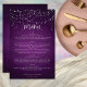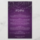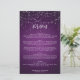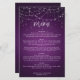 Menu Mariage Budget Royal Purple String Lights. Un prix économique plus grand format dans une variété de choix de papier pour vos menus mariages. Arrière - plan damassé dégradé avec de belles lumières à cordes. Personnalisez facilement le reste du texte. Les couleurs de police peuvent être modifiées via le menu de modification.