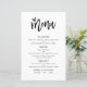Menu Mariage Budget Trendy Artsy Script Text Only. Une taille PLUS GRANDE de 5,5 po x 8,5 po à un prix abordable, sur un STOCK CARTE SEMI GLOSS 110 lb, idéal pour les invitations, à peu près la même épaisseur qu'une carte postale, ou un élégant stock LINEN 110 lb - pour un luxe, légèrement plus mince à un grand rapport qualité-prix. VEUILLEZ NOTER QUE LES ENVELOPPES OPTIONNELLES SONT UN PEU PLUS GRANDES EN TAILLE À 6,75" x 9" env. Cette alternative de taille budgétaire est également disponible dans d'autres choix de papier. Le papier FELT 100 lbs est de couleur bouffante, PAS blanc, donc ajoute une touche rustique. Le stock de papier MATTE 80lbs est blanc vif, pour une impression nette, idéal pour vos menus et programmes, tandis que le papier SATIN 80lbs est mince et léger, idéal pour les enceintes. Une typographie informelle en noir pour le titre principal Menu complétant le reste du texte que vous pouvez facilement personnaliser.