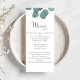 Menu mariage Calligraphie Eucalyptus Vert