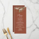 Ce design présente un élégant menu de mariages, avec un élégant script de calligraphie et un arrière - plan en terre cuite, avec des accents rustiques, verts et floraux, parfait pour la décoration de la réception