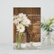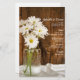 Customisez le charmant Mason Jar et White Daisies Mariage campagnard Menu avec les détails du repas que vous pourrez servir à votre dîner ou déjeuner mariage en ajoutant la salade ou le premier plat, entrée ou deuxième plat et dessert ou troisième plat. Personnalisez-le avec le nom de la mariée et du marié, le lieu de réception et la date de la cérémonie de mariage. N'hésitez pas à modifier le texte ou la police en fonction de vos besoins nuptiaux. Ce menu rustique chic et rustique à la décoration mariage est agrémenté d'une numériquement photographie florale rehaussée d'un bocal en verre rempli de fleurs de marguerites blanches et d'un arrière - plan en bois de grange brun patiné. Parfait pour le couple qui a planifié un décontracté mais classe ferme rurale, grange, ranch ou le thème de style occidental mariage.