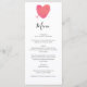 Ce design présente un coeur aquarellé rustique. La typographie noire et le coeur rouge/orange se contrastent. Le coeur peint à la main présente des éclaboussures de peinture aquarelle qui incarnent la passion. Un design simple et romantique avec une touche rustique. Ce design est idéal pour n'importe quel thème mariage. Le design parfait de carte de menu mariage toute saison. Des invitations de mariage et d'autres articles de papeterie sont également disponibles.