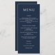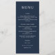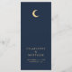 Carte de menu bleu foncé Mariage céleste avec forme de lune sur le dos.