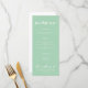 Ce menu de dîner de mariage vert menthe doux présente une typographie blanche chic pour une cérémonie en plein air printanière douce. Un script simple et élégant sur des menus verts pastel tranquilles pour une réception de jardin.