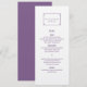 Carte de menu simple et minimaliste Déco Chic Mariage avec une bordure décorative moderne violet art déco. Ce menu classique et élégant est facile à customiser avec vos détails mariages. Pour plus d'options de personnalisation, cliquez sur Personnaliser.