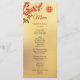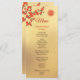 Des cerisiers rouges fleurissent et un double symbole rouge de bonheur sur un arrière - plan d'or. Avec des noms de mariée et de mariée personnalisés, la date du mariage et un texte de menu personnalisé dans un script manuscrit classique. À l'arrière se trouvent les initiales à modifier. A l'arrière se trouve un texte chinois traditionnel.