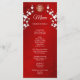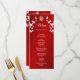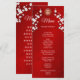 Fleurs de cerisier blanches et symbole de double bonheur doré sur fond rouge scintillant. Avec les noms personnalisés des mariés, la date du mariage et un texte de menu personnalisé. Au verso figure un texte traditionnel chinois personnalisé. Vous pouvez utiliser chat gpt pour traduire le texte du menu anglais en texte chinois traditionnel.