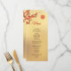 Des cerisiers rouges fleurissent et un double symbole rouge de bonheur sur un arrière - plan d'or. Avec des noms de mariée et de mariée personnalisés, la date du mariage et un texte de menu personnalisé dans un script manuscrit classique. À l'arrière se trouvent les initiales à modifier.