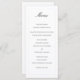 Avec une élégance classique et un charme intemporel, ce menu mariage est doté d'un texte de titre de script charmant avec un texte serif classique véhiculant vos sélections de menu. Une simple bordure gris argent encadre votre texte avec un style et un charme intemporels. Le texte restant à l'avant du menu est configuré dans un modèle facile à utiliser où vous pouvez modifier avec votre menu prévu. Vous pouvez ajouter ou supprimer des lignes de texte, redimensionner ou modifier le style de police et déplacer le texte selon vos besoins. Pour simplifier la personnalisation de ce menu, sélectionnez d'abord "personnaliser ce modèle" pour modifier le texte affiché dans le modèle de conception avec vos entrées. Ensuite, choisissez "modifier à l'aide de l'outil de conception" pour ouvrir l'éditeur complet et apporter des modifications supplémentaires si nécessaire.